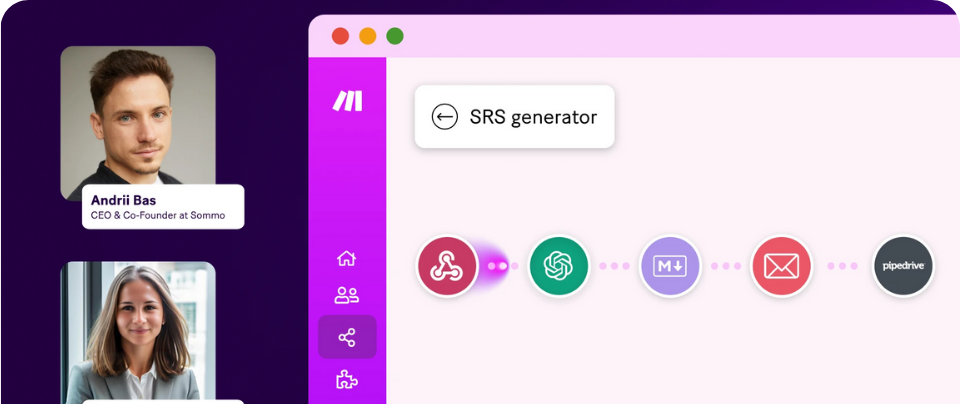 | Customer Story: Make brings 800 extra leads per month Standing out in a crowded market? Sommo cracked the code with an AI-powered SRS generator built on Make. The payoff? Up to 800 extra leads per month, a 3% lead-to-client conversion rate, 5x more active users, and faster project timelines. Want to see their winning formula? |