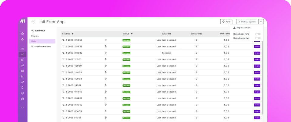 | Top Tip: Retry incomplete executions with a single click Did you know we've made handling incomplete executions easier? Bulk-select and retry them with a single click! Once retried, all executions are automatically scheduled and processed. Plus, for auto-retries, you'll now see exactly when they're scheduled to rerun. We hope you'll love it! |